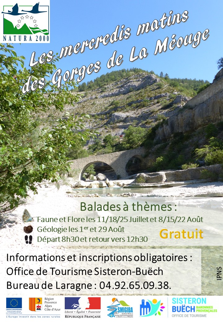 Dans le cadre de l'animation du site Natura 2000 "Gorges de la Méouge", le SMIGIBA vous propose des balades à thèmes pour découvrir le patrimoine naturel des gorges, chaque mercredi pendant tout l'été :