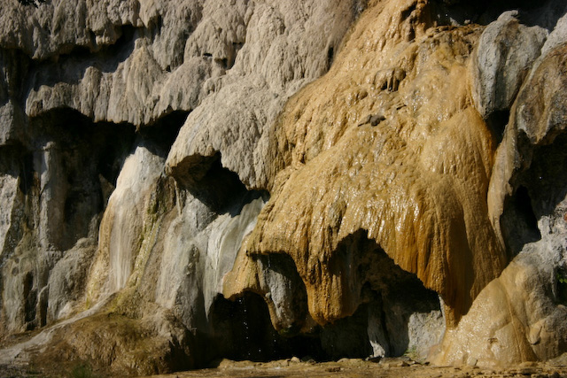Sources pétrifiantes : le bicarbonate de calcium dissout dans l’eau se dépose progressivement sur un support de mousse et d’algues pour former des structures étonnantes mais fragiles, constituant la niche écologique d’espèces rares de la faune et de la flore.